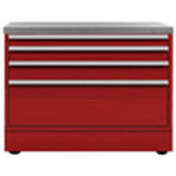 CUSTOMIZE your SHURETECH® Bench System with full extension 400lb. capacity drawers, stainless steel top cap, a stainless steel over wood core top (optional upgrade), a concealment skirt and four swivel casters Benches can be combined to form a larger workstation. Model TS7091.
